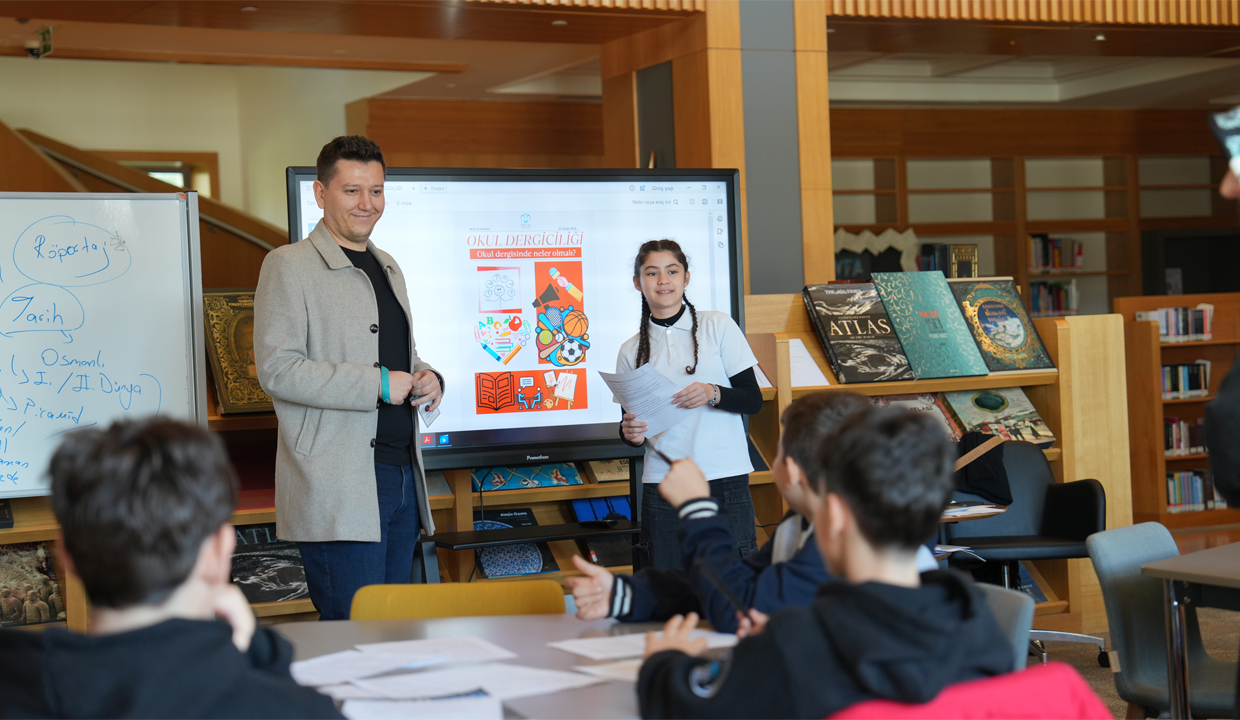 As part of the Young R&D Project led by the Istanbul Provincial Directorate of National Education, the Press and Publication Workshop was hosted by NÛN Middle School. The session was conducted under the leadership of Elif Akardaş, Head of the Turkish Department and a children’s books author, offering students an introduction to the fundamentals of school journalism.